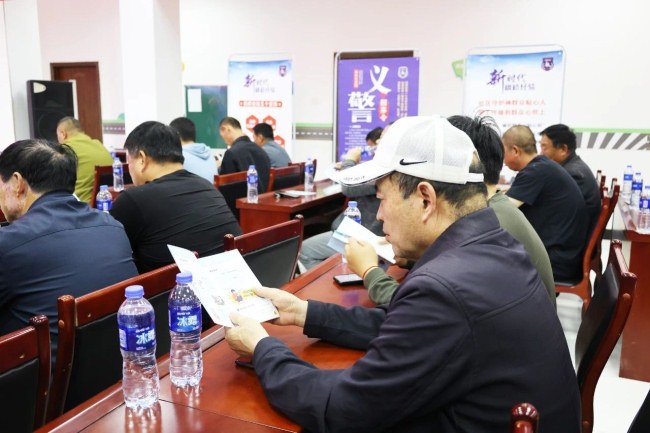 培訓中,民警就反詐宣傳、交通疏導要點進行專題培訓并向現場義警發放宣傳資料。