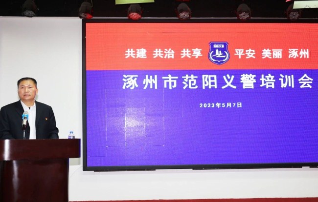 松林店派出所所長任建波介紹了轄區義警隊伍建設情況,表示派出所將做好各項服務、保障工作,為涿州市“范陽義警”群防體系建設做出松林店貢獻。