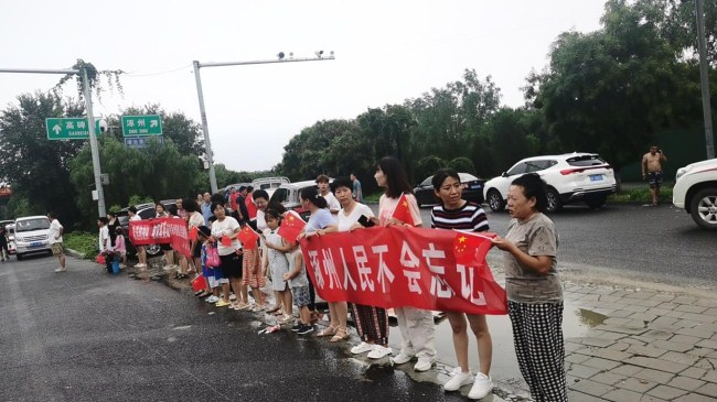 組織部分群眾到涿州南高速口歡送支援涿州救援隊(duì)的救援勇士們和迎接指引各地支援捐贈(zèng)物資人員和車輛!